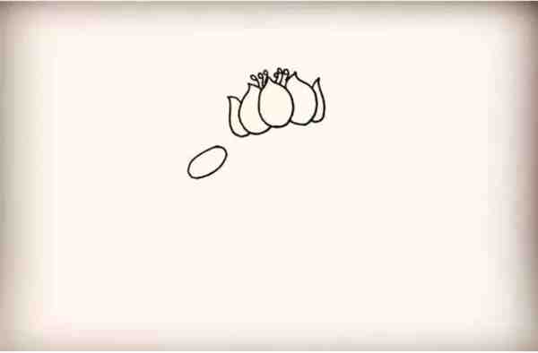 12、用不规则的椭圆在右侧画一片较小的荷叶。