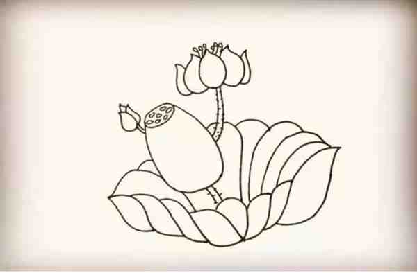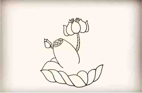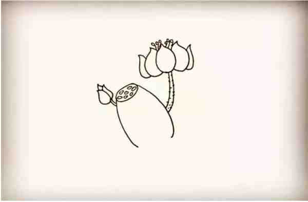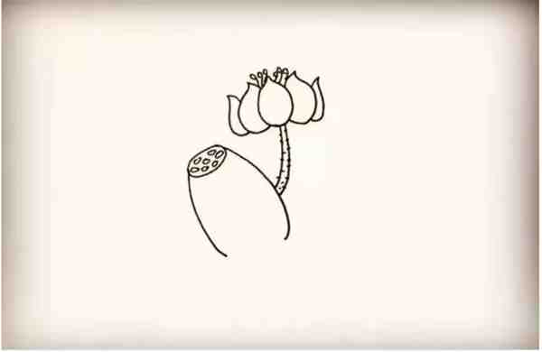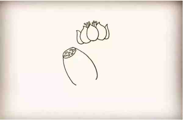 5、再画出胖胖的莲蓬和圆圆的莲蓬子。