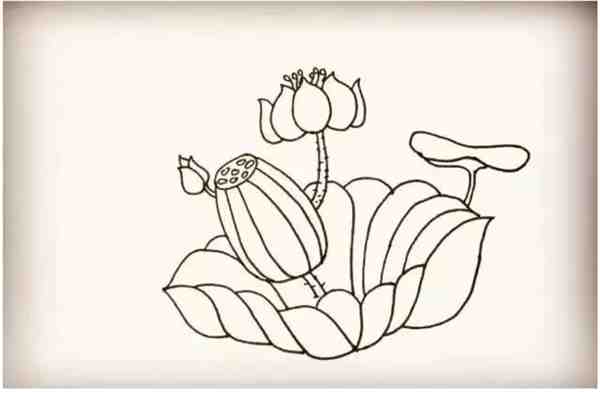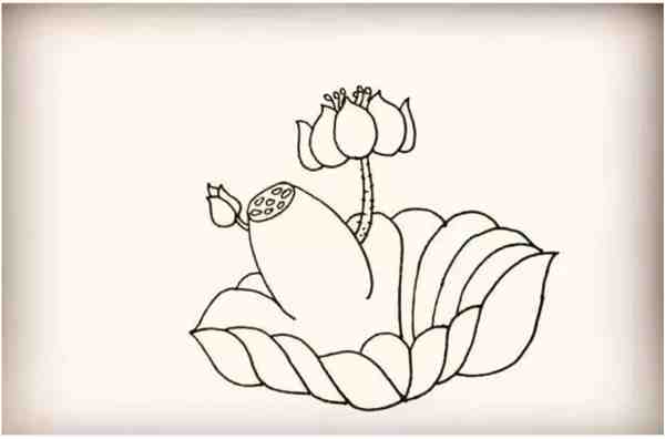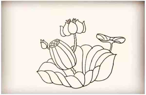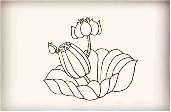 8、围绕莲蓬画出荷叶.仔细观察荷叶的画法。