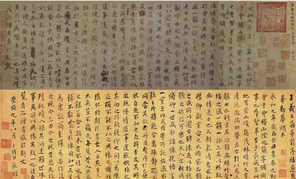 兰亭集序的魅力,首先来自于它所呈现的自然之美。画面上,山峦起伏,溪流淙淙,树木葱茏,竹影摇曳。每一笔、每一墨都似乎在诉说着自然的故事,传递着生命的韵律。而那如行云流水般的笔触,更是将自然景色的灵动与生机展现得淋漓尽致。