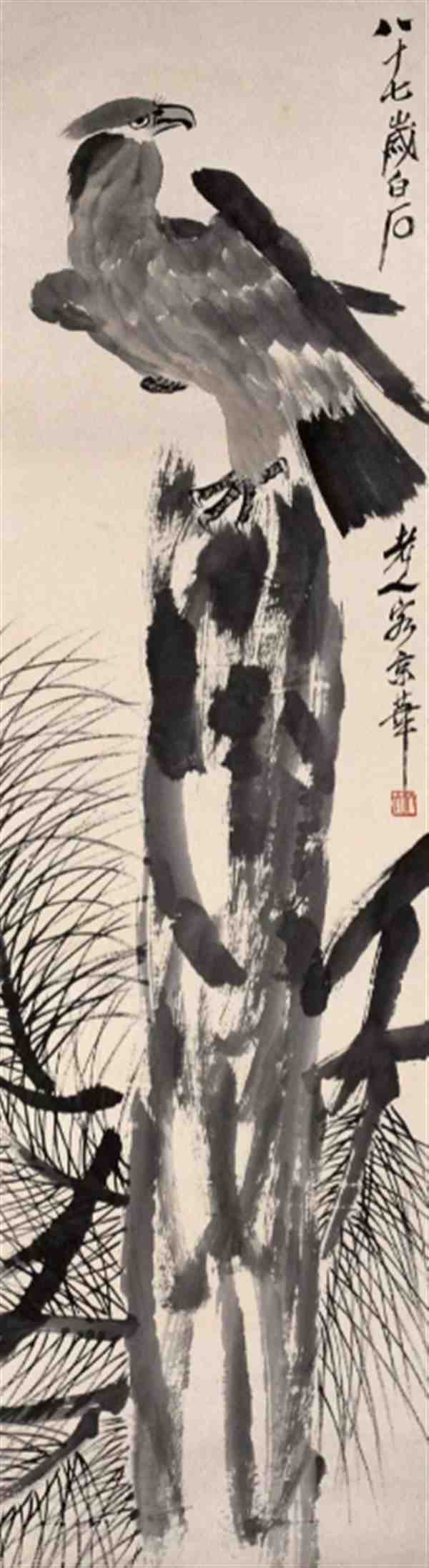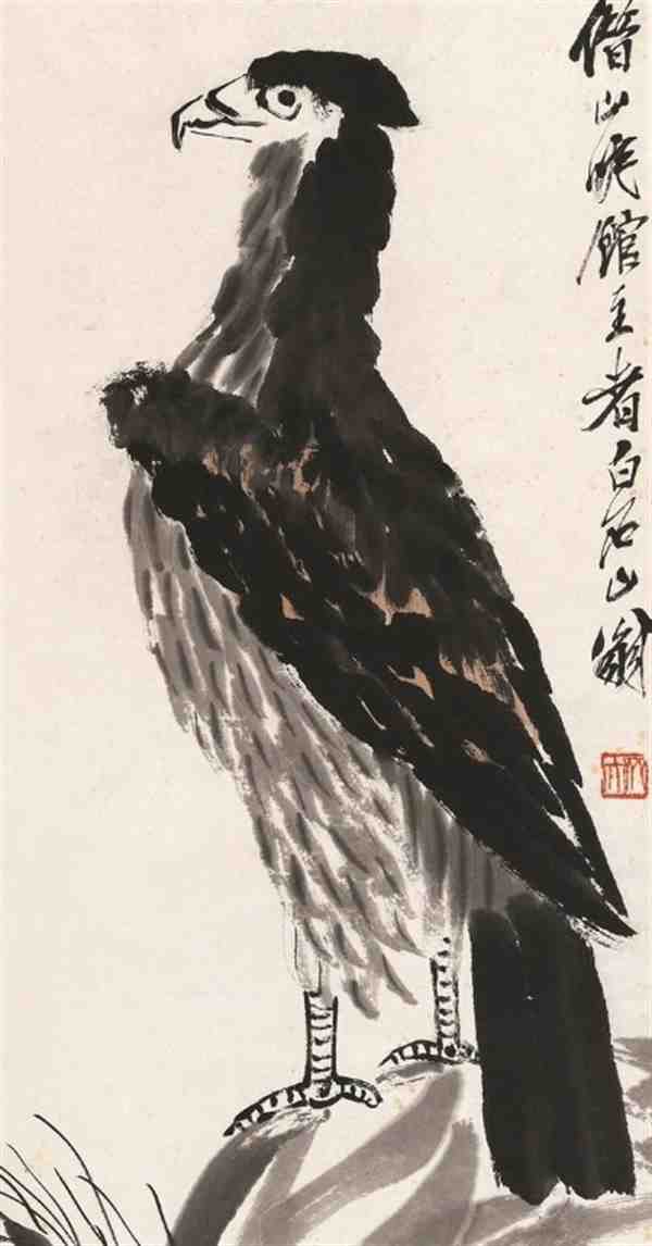 总的来说,齐白石画鹰的技巧独具匠心,个性鲜明,不仅展现了他对绘画艺术的热爱和追求,也代表了中国传统文化的继承和发展。