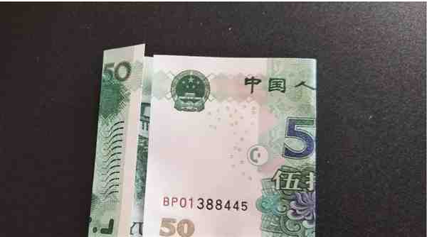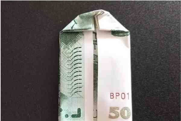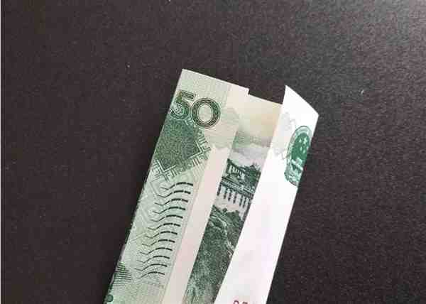 步骤1.首先,先折50元的,将中间50的5和0对折,把多余的部分对折回来。