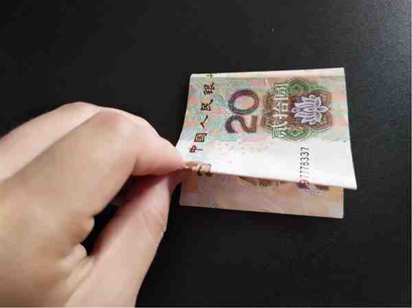步骤5.把上面“中国人民银行”几个字折到后面,大概是20元上面一点的位置,折好就是这样。