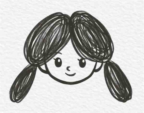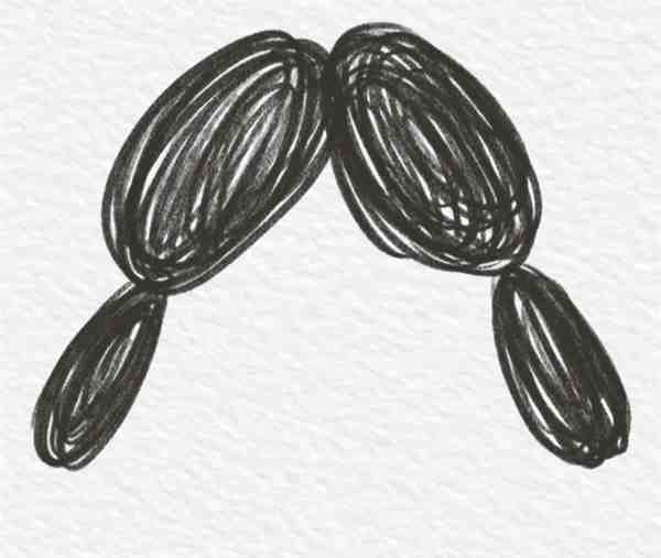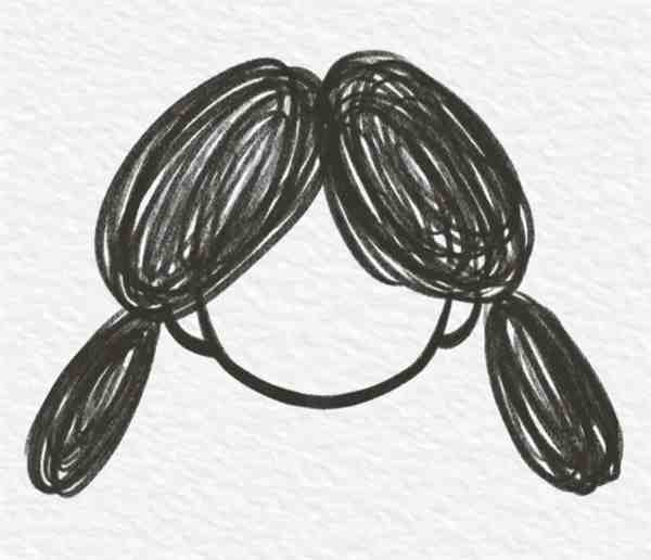 1、描绘出两团交织在一起的乱线,以代表女孩的秀发。