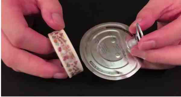 Step 2.给罐头盖的外面包上一层胶带,防止割伤手;