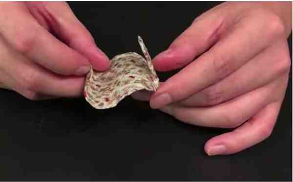 Step 3.然后将盖子按照下图所示,往上弯起,弯成s形;
