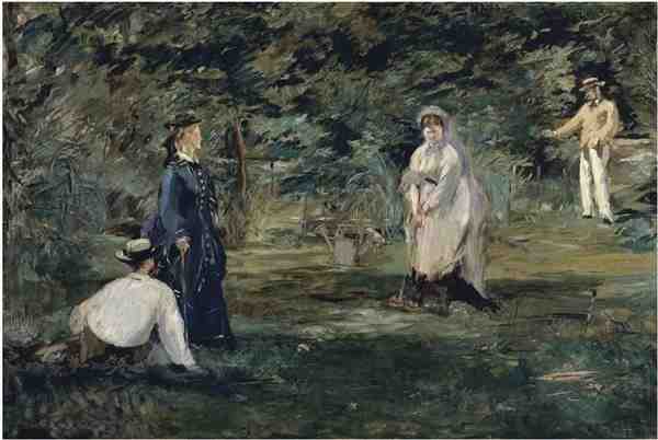 马奈的绘画作品常常以现实生活中的普通人为主题,他通过精确的描绘和鲜明的色彩表现出了画面的生动性和情感。他的代表作之一是《草地上的午餐》,这幅画作表现了两个男子和一个女子在草地上野餐的场景,通过巧妙的构图和色彩运用,展现了画面的空间感和光影效果。