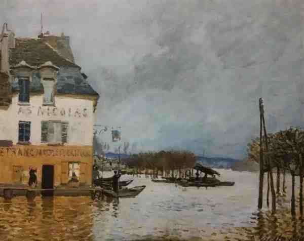 是世界著名印象派画家阿尔弗莱德·西斯莱于1876年所创作,现收藏于巴黎卢浮宫。这幅印象派油画名作,在绘画性处理上都是以灰色、淡蓝色和个别棕色调子之间的微妙变化为基础,原本这种水汽弥漫的平淡无奇的感觉,在西斯莱的笔下却变成了一种迷人的感觉,变成了神话般的境界。该画作虽是描绘遭灾受难后的景象,但画家传递的不是受灾的悲苦和凄凉,而是灾后迎接光明的信心和希望。