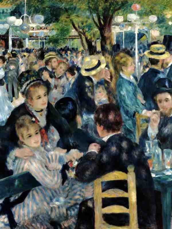 又名《煎饼磨坊的舞会》,是法国著名的印象派油画家雷诺阿于1876年所创作的一幅油画名作,现收藏于法国巴黎奥塞美术馆。这是一幅描绘人们在轻松愉快的环境下,尽情歌舞、聊天的印象派油画作品,画中人、色彩、光线的相互烘托,让画面产生了高度的美感和感染力。雷诺阿在35岁完成这幅画,此画作可以说是雷诺阿灿烂青春的纪念碑,也给毕加索、杜菲等画家带来许多灵感和启示,不仅是一幅洋溢着欢乐、愉快时代精神的印象派杰作,也是世界印象派名画之一。