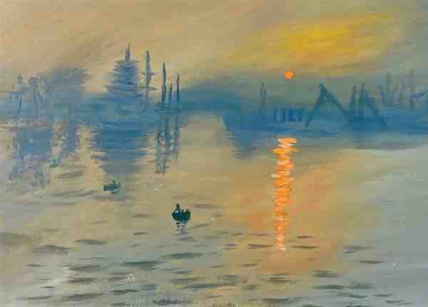 是世界著名印象派画家克劳德·莫奈于1872年在勒阿弗尔港囗创作的一幅油画,现收藏于巴黎马尔莫丹艺术馆。该画描绘了晨雾笼罩中的日出港口景象,用美妙的光的变幻与运动展现了迷人景色。这幅世界顶级油画,突破了传统题材和构图的限制,完全以视觉经验的感知为出发点,侧重表现光线氛围中变幻无穷的外观,在艺术史的长河中,具有里程碑的意义,是印象画派的开山之作,也是莫奈画作中最具声誉的经典作品。