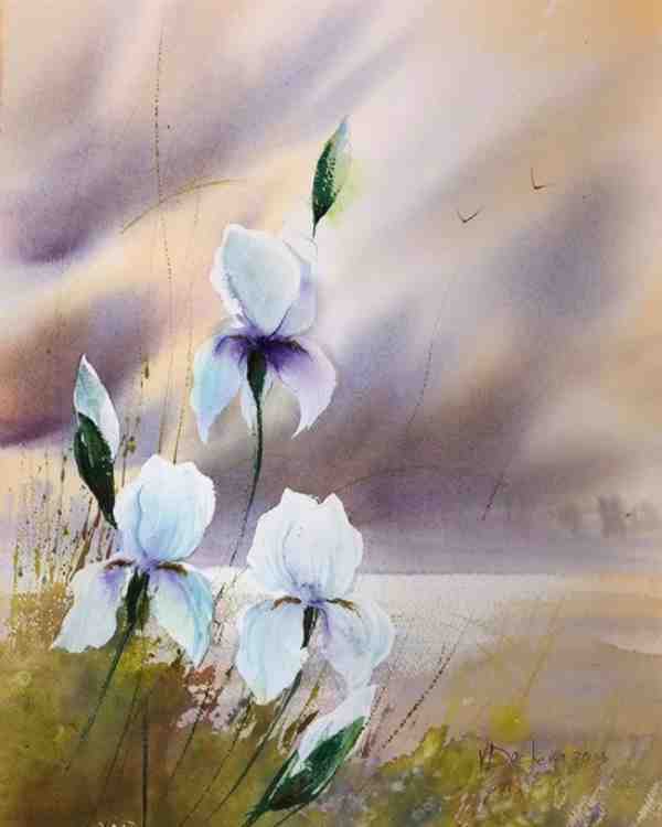 河流与花卉是 Veneta Docheva 常常用到的绘画主题,水纹的绘画看似简单,却要经过她多年的绘画经验而得之。笔法老练,画面精致,色彩搭配更是极其优美。