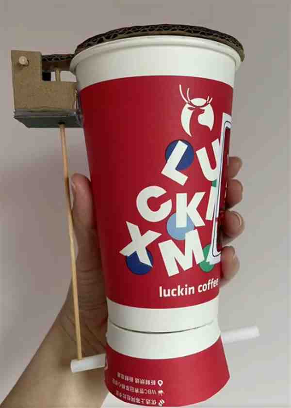 所需材料:奶茶杯、小木棍、纸板、剪刀、胶枪