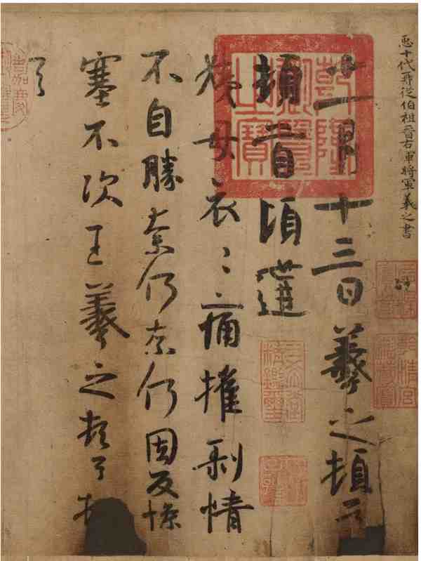 《丧乱帖》为王羲之晚年所写,情感真挚,凄厉动人。随着情绪的变化,书写节奏高低起伏,及至最后已经到了信笔而就的状态。帖中两个“痛”字,两个“羲之”,四个“奈何”各不相同,反映出书家变化高妙的创造力。