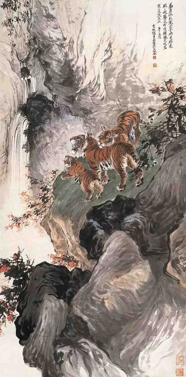 张善孖的虎,无疑是他作品中的一大亮点。他笔下的虎,不仅是形态逼真,更是赋予了虎以人的情感与灵魂。他通过精细的笔触和深厚的色彩运用,将虎的勇猛、力量和独立性展现得淋漓尽致。他的虎,仿佛拥有了生命,它们在画布上舞动,诉说着一个又一个美丽的故事。