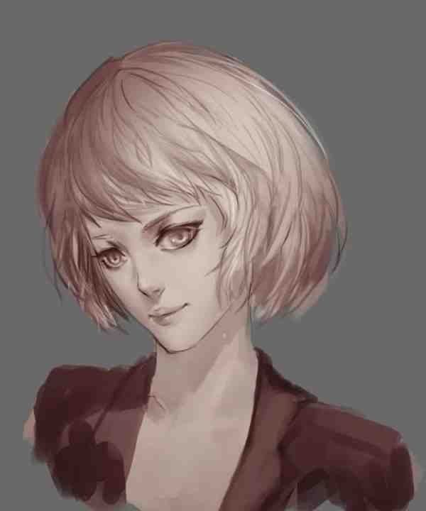 上大致的明暗,新建图层用硬边的画笔画出脸上的阴影部分,然后用柔边的笔擦来擦掉多余的部分,保留明暗交界线的锐利边缘,提醒自己这里是比较重要的部分,然后头发的部分将之想成圆球来绘制,上大致的明暗,图片(可以用加深减淡工具,如果新建图层的话可以用正片叠底,太黑都没事 调整透明度自己适合的感觉就可以合并了)