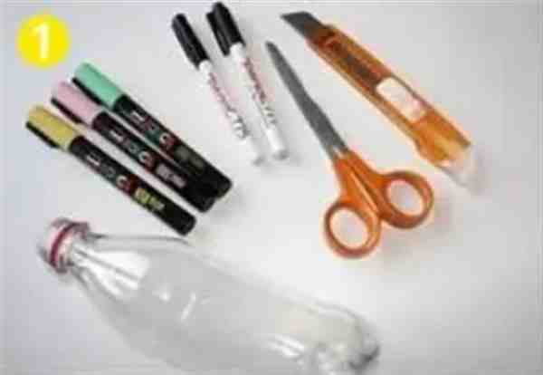 准备材料:塑料瓶,美工刀,彩笔,丙烯颜料。