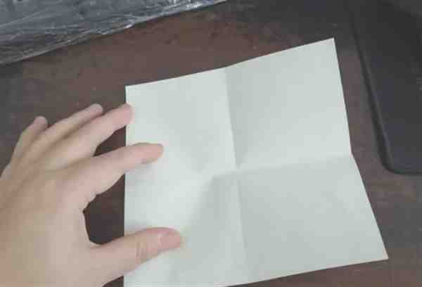先把彩纸的中间折出十字形,再把下侧的两个角向内折。