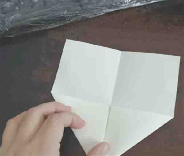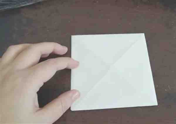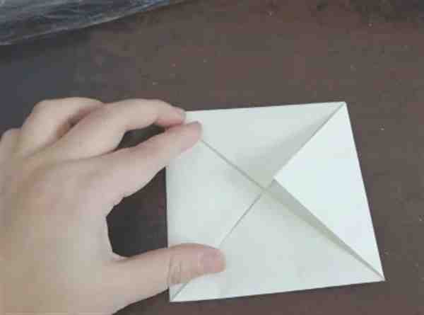 继续把另外两个角向内折,然后把彩纸翻到背面。