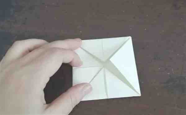 继续把四个角向内折,然后把中线对折一下。