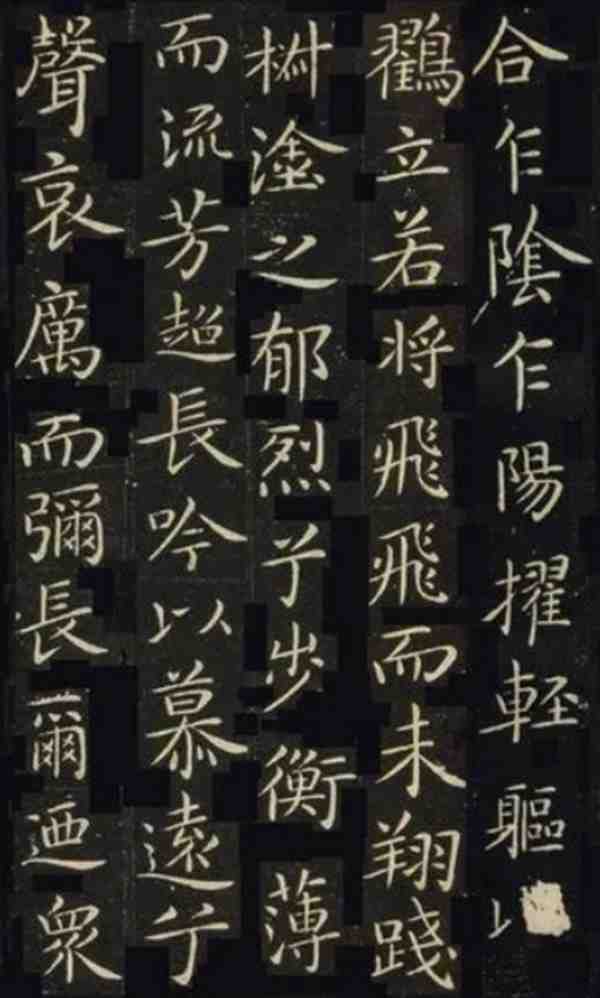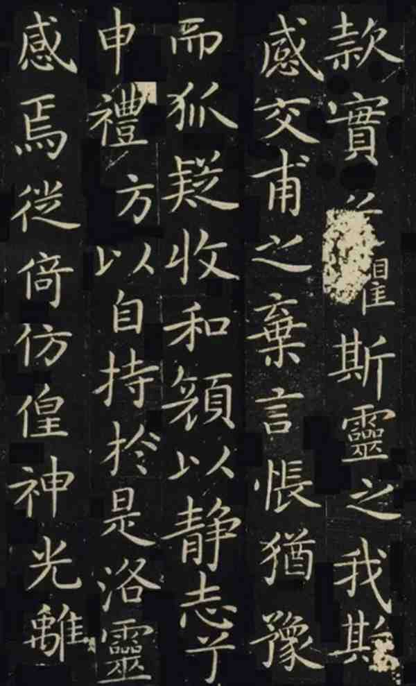 与钟繇、王羲之的书法相比,《洛神赋》更显妍丽流美。其结体舒展,挺拔有力,风格属于秀美一路。撇捺伸展得较长,但并不软弱,笔笔送到末端,遒劲有力。字体整体呈纵式外鼓,是外拓笔法的典型代表。在章法上,字的大小有所变化,字距和行距都相当舒朗。