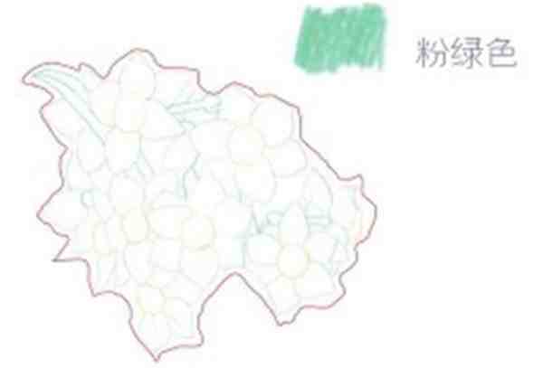 (2)接下来继续用粉绿色的铅笔把剩下来的花朵勾画完整。