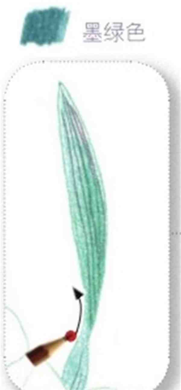 (3)根据叶子的走向用墨绿色的铅笔涂抹整个茎叶。