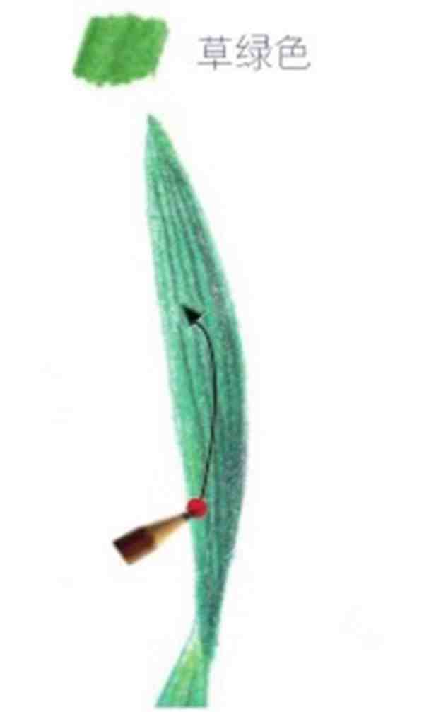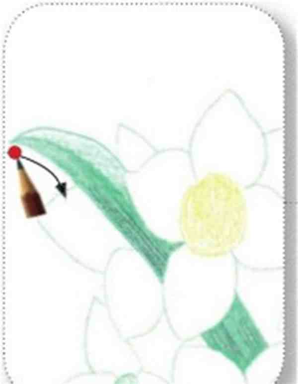 (12)可以选用草绿色的铅笔涂抹叶片,同时勾画出叶片的亮面结构。