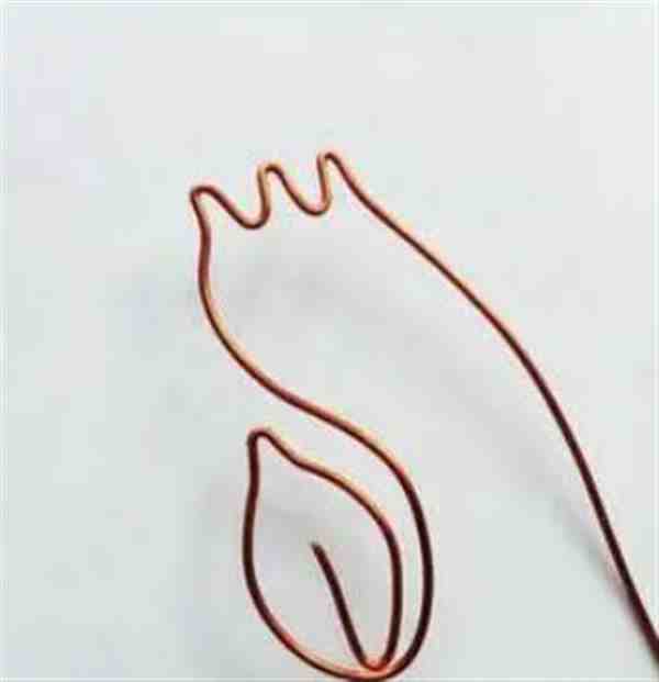 使用尖嘴钳弯曲铜线一端约1.5cm呈25-35度角,这将是叶片的中心叶脉。