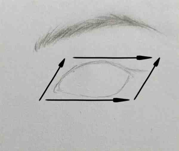 Step 1.画眼眶想象平行四边形注意眼头圆。