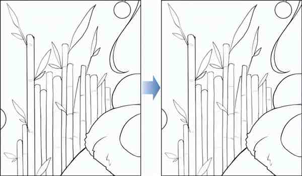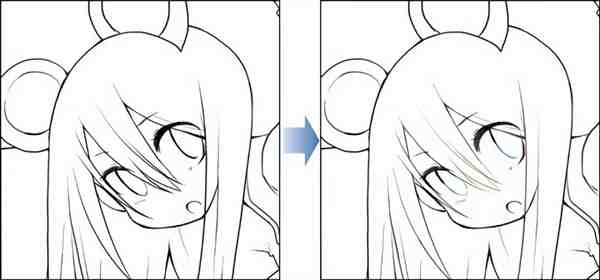 整体上色后,部分更改线条图的颜色,使线条与绘制的颜色混合。在图层面板上选择背景线描图层,然后单击锁定透明像素。如果在[锁定透明像素]之后使用[喷枪]工具绘制,则可以仅更改所选“背景线描”图层的线描部分的颜色。同样,“字符线图”图层也部分改变了线图的颜色。我们正在改变刘海和眼睛的下半部分。