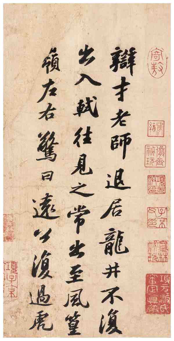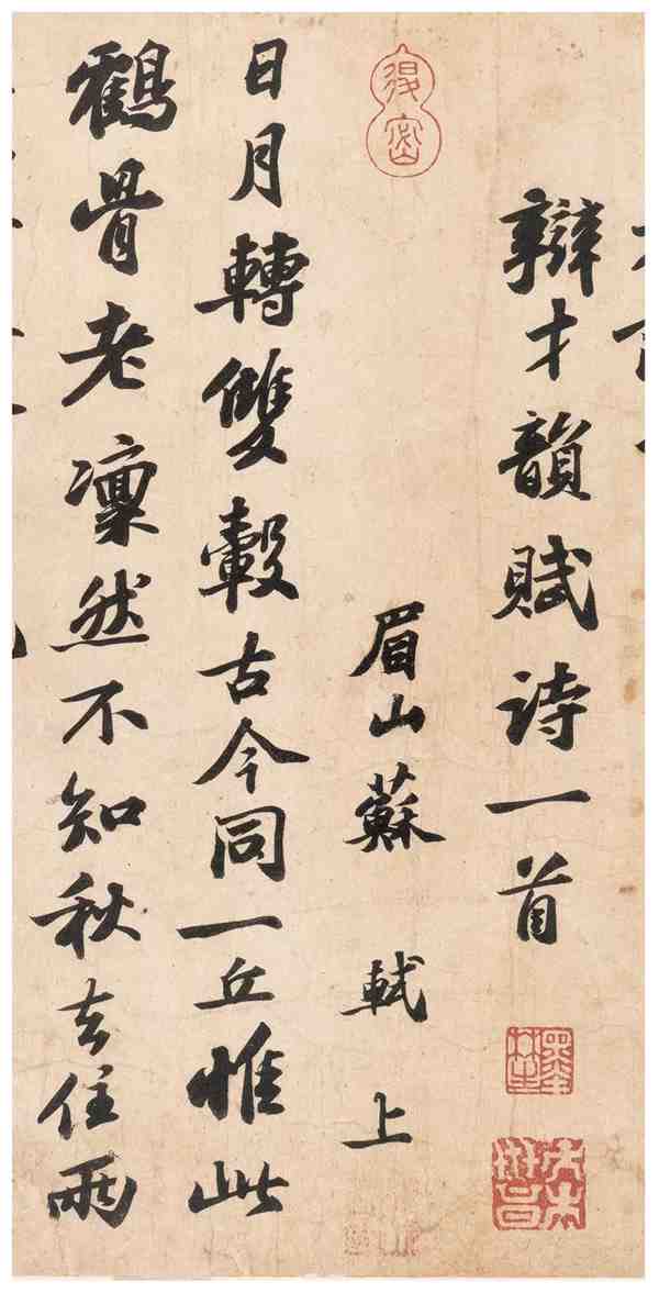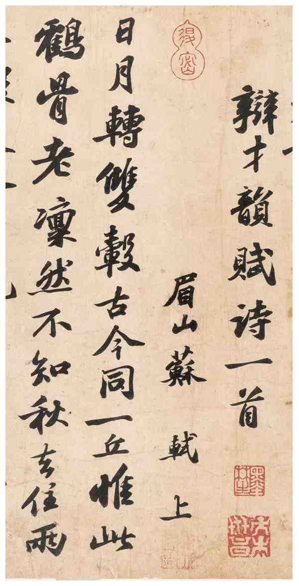 苏轼的行书,深受唐代颜真卿的影响,又融汇了自身的生活阅历和艺术感悟,形成了独具一格的艺术风格。他的笔力雄健,遒劲有力,如天马行空,如波涛汹涌,往往寥寥数笔就能勾勒出大气磅礴的意境。他用笔豪放洒脱,不拘一格,却又不失法度,字形大小相间,疏密有致,错落有致,呈现出一种自然和谐的动态美。他的墨色浓淡相宜,干湿对比强烈,层次分明,将情感和意境融入笔墨之中,赋予作品深刻的内涵和感染力。