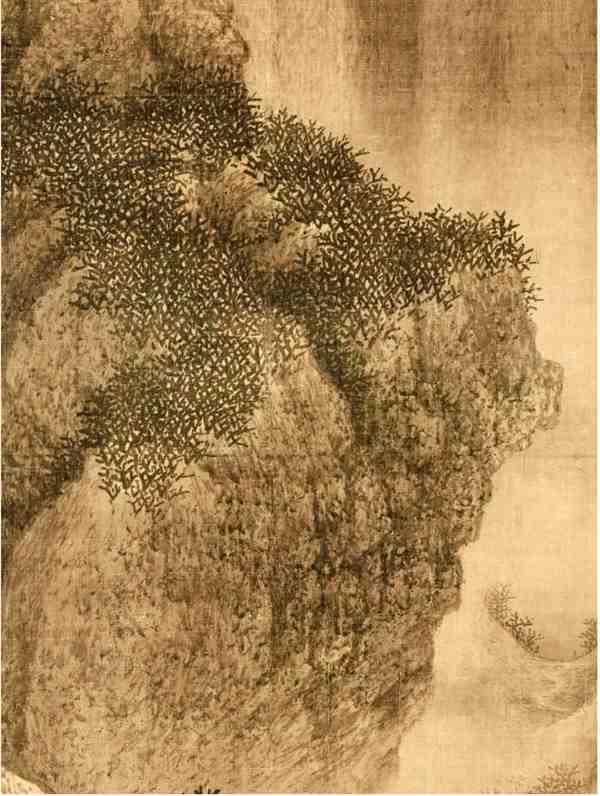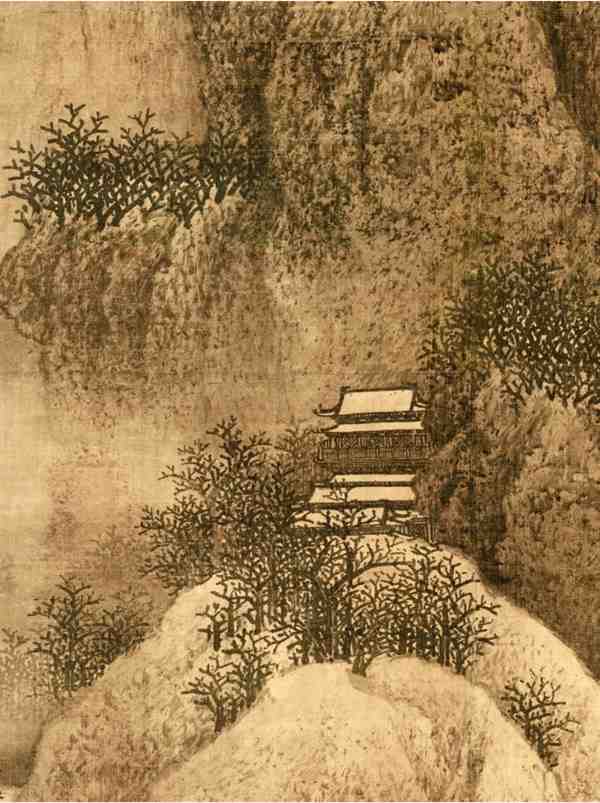 《雪景寒林图》还有一个特点就是描绘了雪中云雾,这在以往的雪景画中极为罕见。站在这幅画面前仿佛一抬脚就能跨入画中,感受到雪天的寒意。虽然尺寸巨大,但宋画特有的写实特色依然明显。凑近一点,你会发现无论山石纹理,还是枯木枝桠,作者都画得一丝不苟。前进一步察细节,后退一步观气势,这就是欣赏《雪景寒林图》的乐趣。