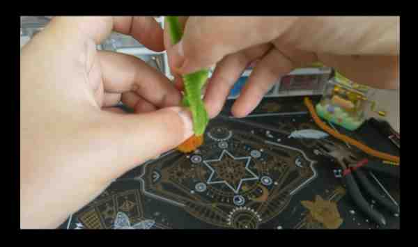 所需材料:4根橙色扭扭棒、1根绿色扭扭棒、胶水、斜口剪钳(或剪刀)、多功能钳、笔