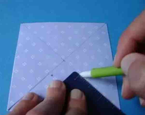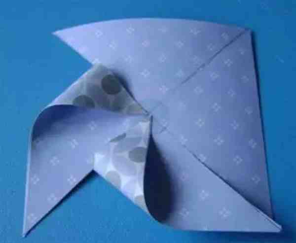 然后,过程大家看到了,沿着对角线折叠,剪开,再顺着把边角向中心折起,一直把四个角都折好。