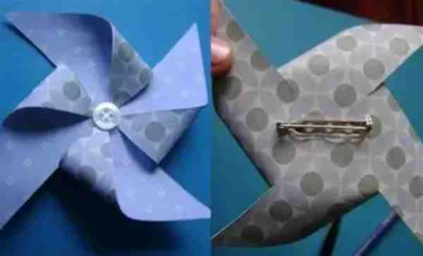 最后,在风车后面的把一个小夹子用强力胶水黏在风车中心,小夹子可以是小发夹或者能钩住的之类的东西。