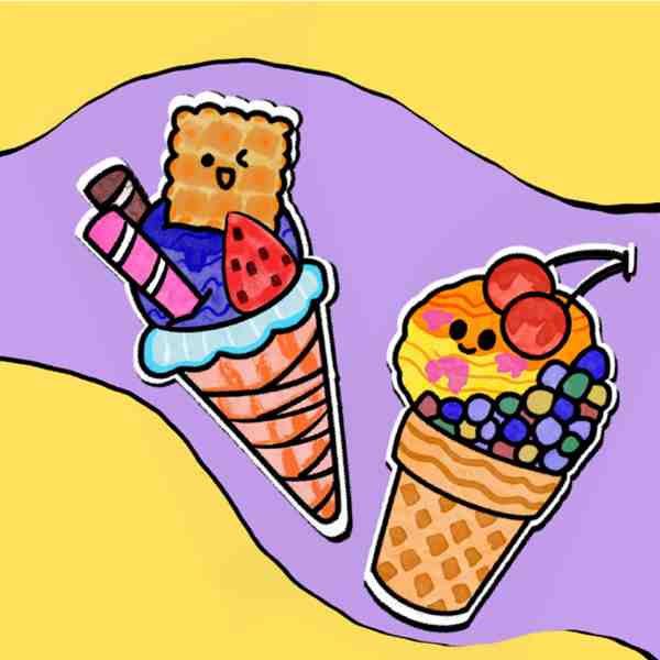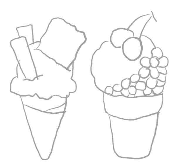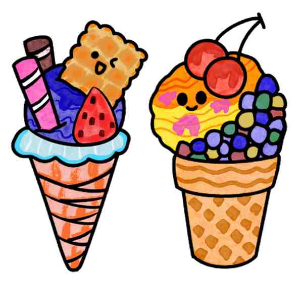 2、用马克笔给冰淇淋上色,观察冰淇淋的颜色,涂上自己喜欢的色彩
