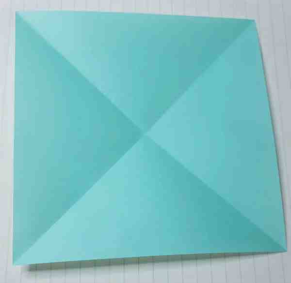 Step 4.再次将纸张对折,然后展开,形成“米”字形折痕。