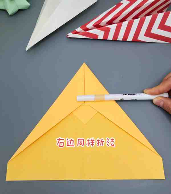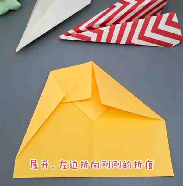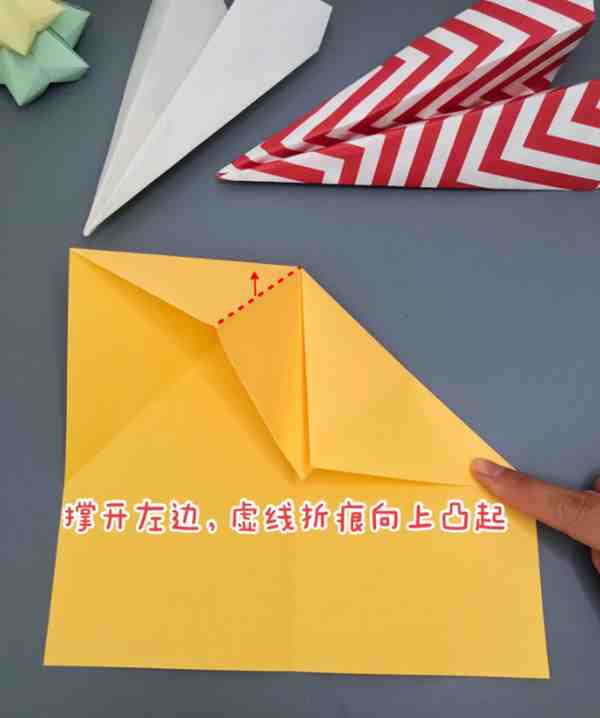 Step 5: 撑开左边,虚线折痕向上凸起。