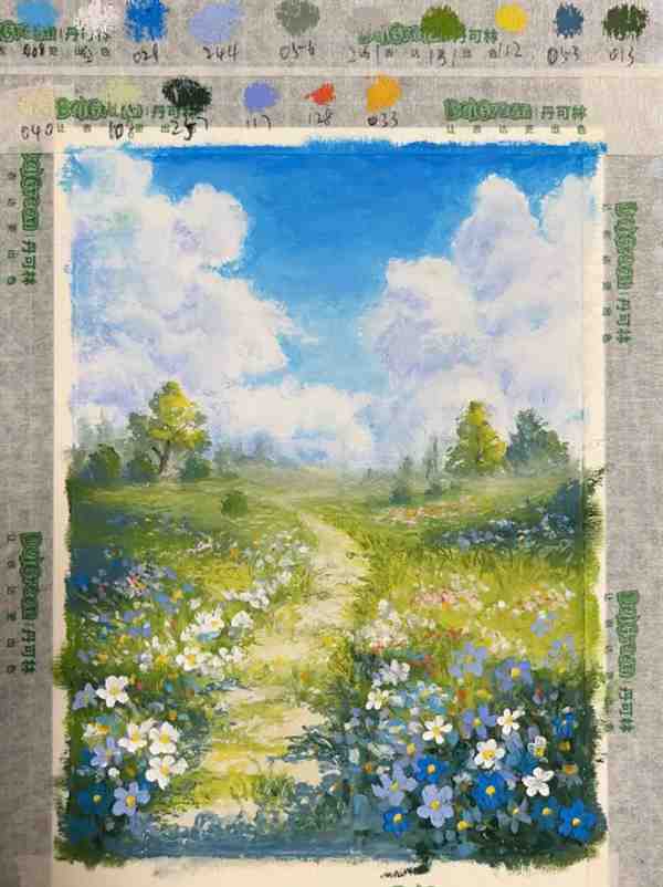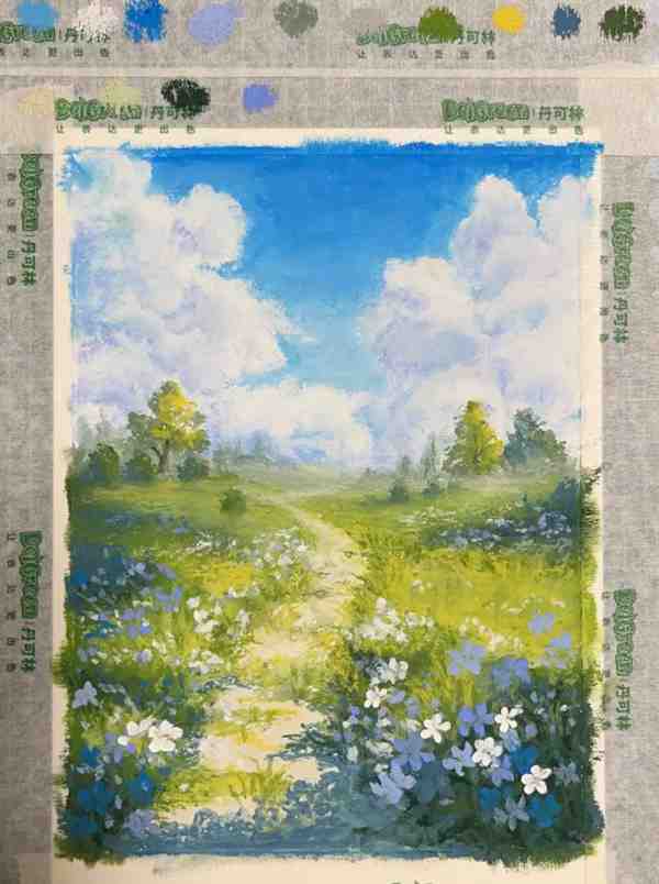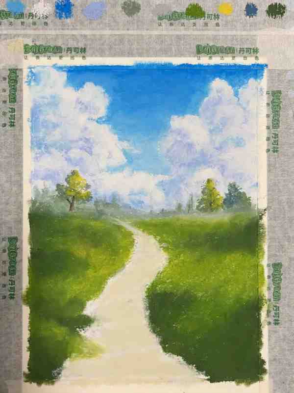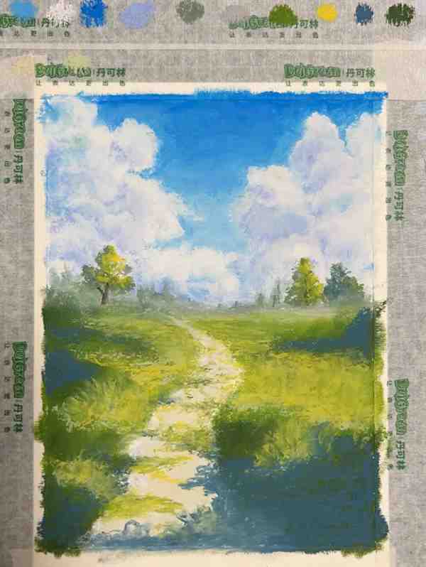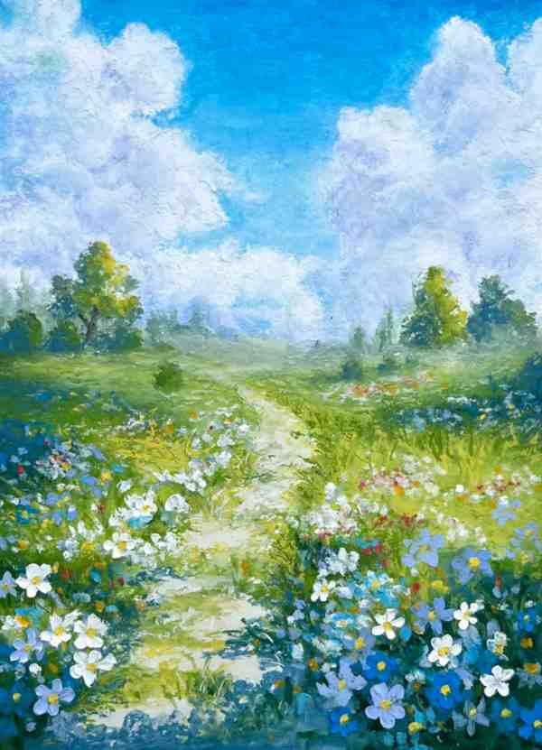 步骤12.完成作品:最后,让整个画面看起来和谐统一,一个充满生机和活力的春天小路就完成了。