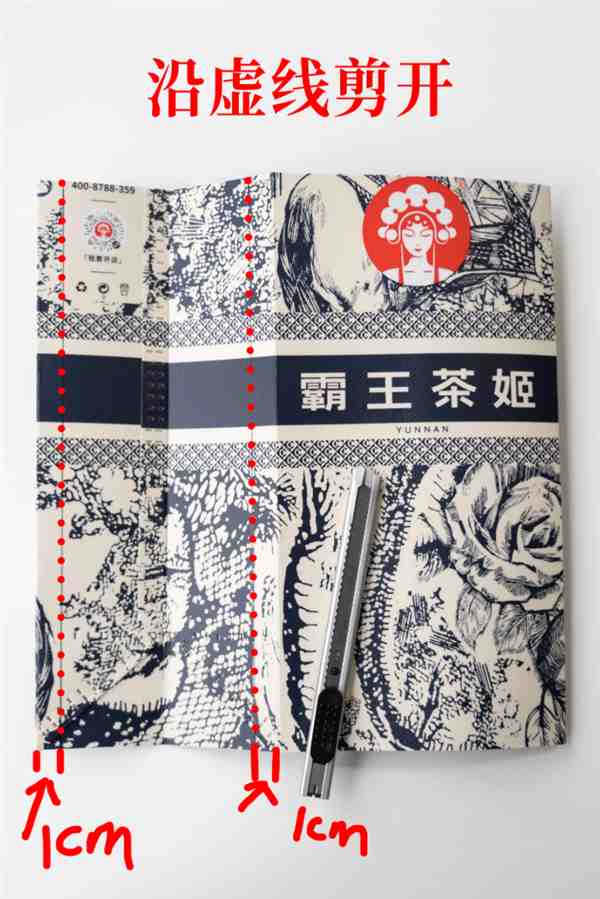 Step 8.第3个外卖袋,保留区域,沿虚线剪开。