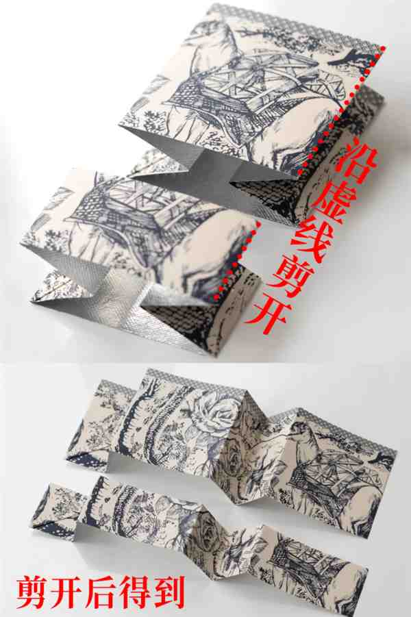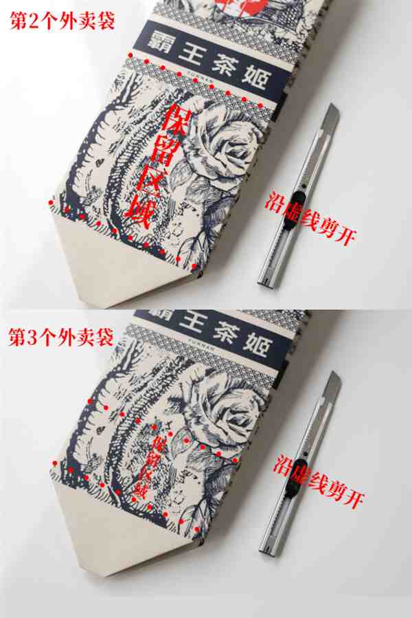 Step 7.第2个外卖袋,保留区域,沿虚线剪开。