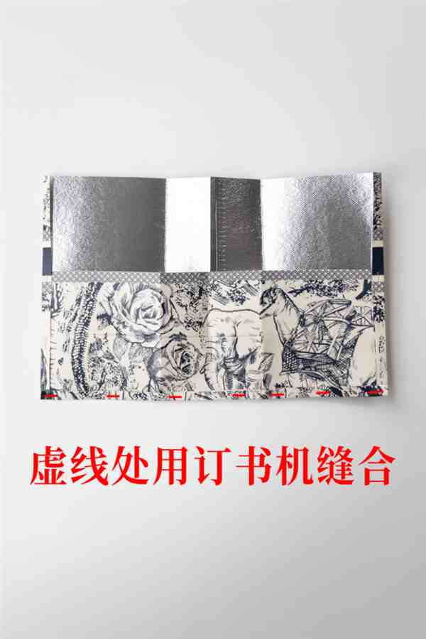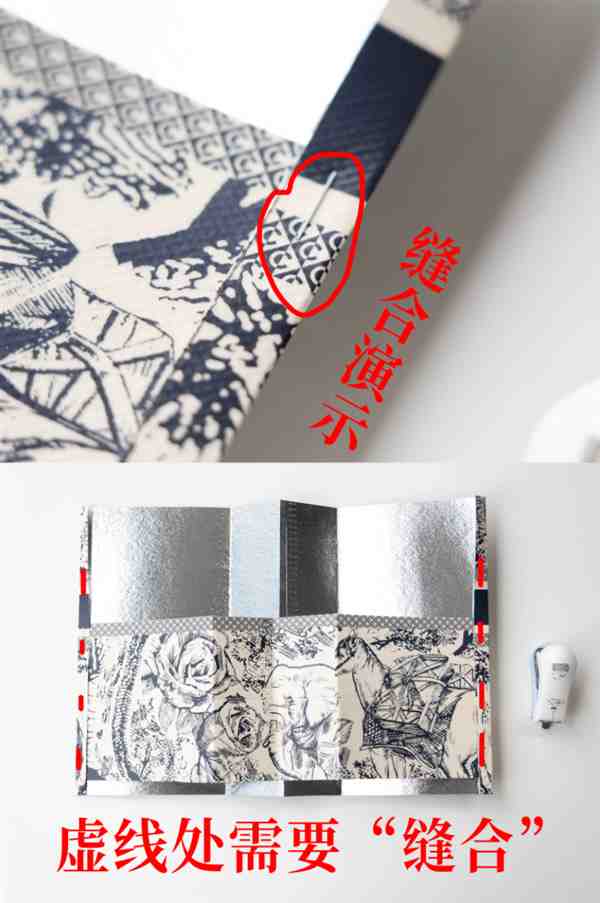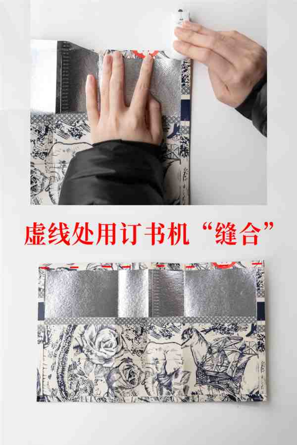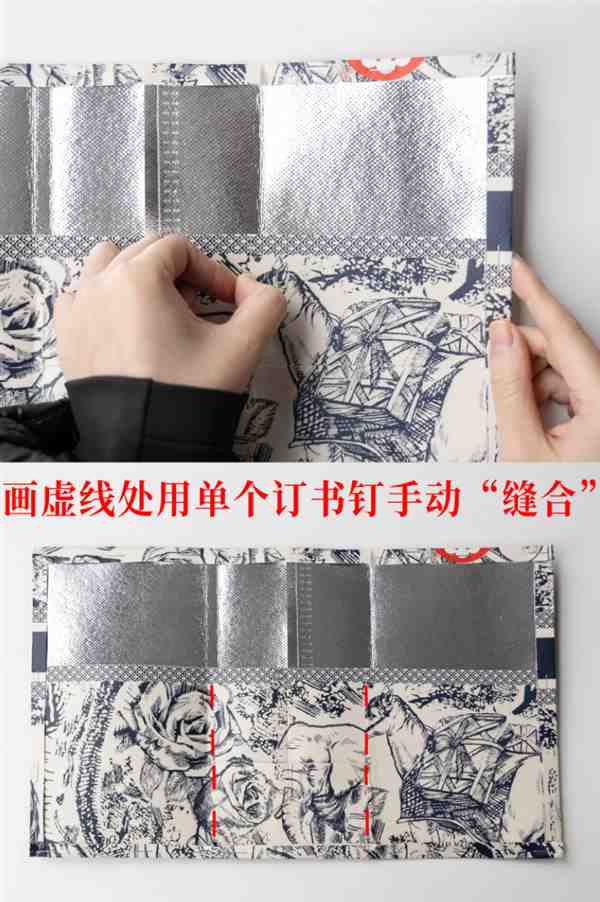 Step 20.画虚线处用单个订书钉手动“缝合”。
