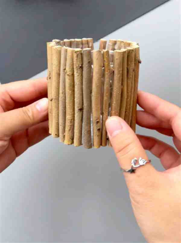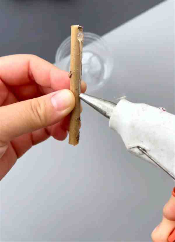 Step 3. 树枝用热熔胶粘在瓶子上。