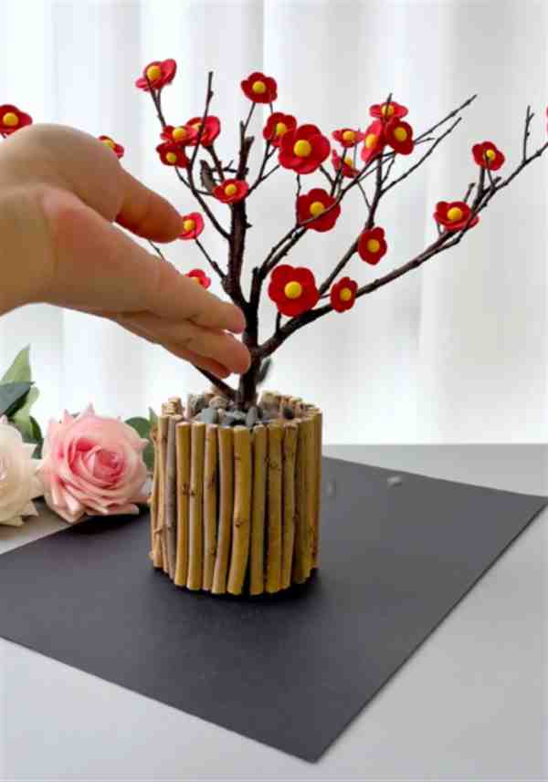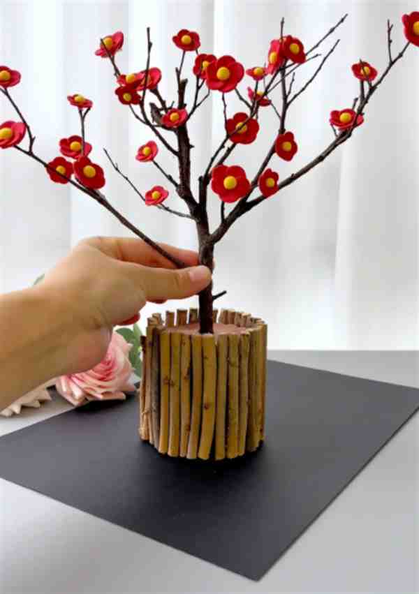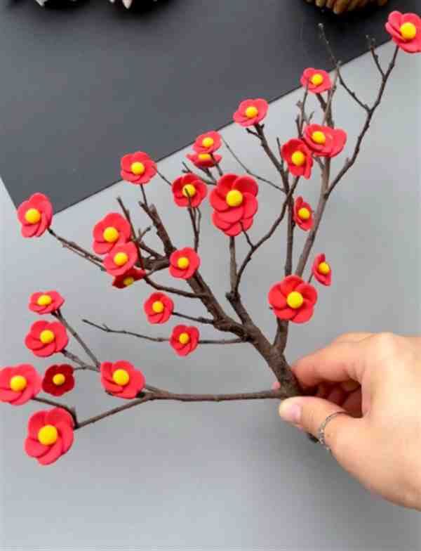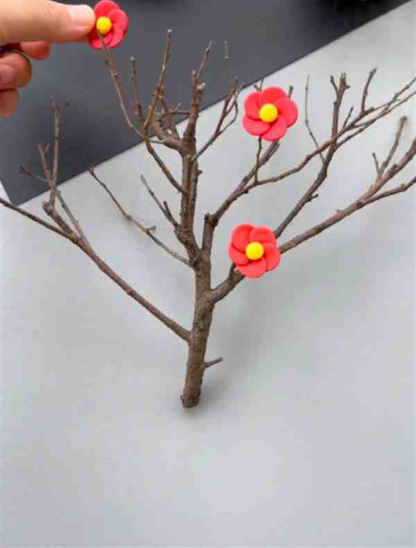 Step 9. 多做几朵,按自己想法依次将花朵放在树枝上。