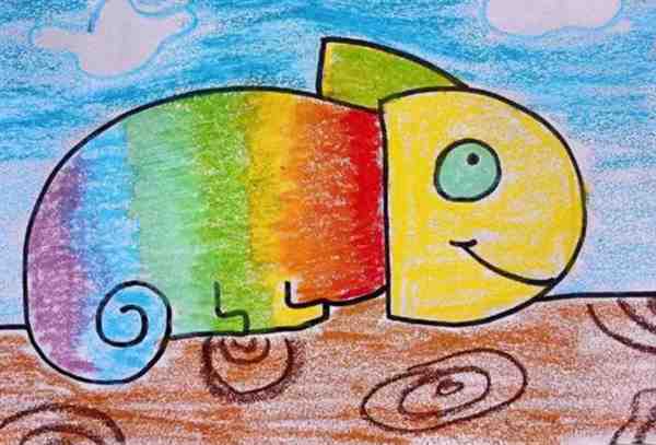 首先,它想变成一只胖乎乎的变色龙。于是,它用画笔在画布上画出了一片蓝色的湖水,然后在湖边画了散步,看起来可爱极了!字母D得意地想:“哈哈,我真是太有天赋了!”