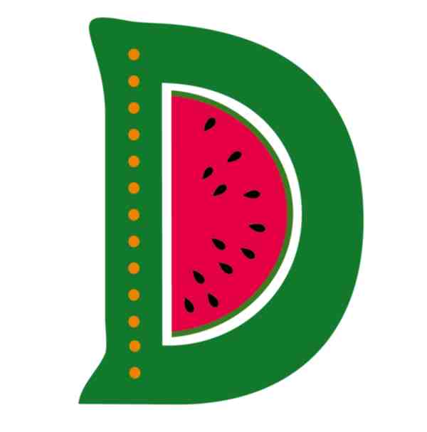 最后,字母D还想变成美味的西瓜。它用画笔在画布上画出了红绿相间的外套,红色中有很多黑色的小斑点。让人垂涎欲滴的西瓜就完成了!字母D觉得自己的创意真是太棒了!
