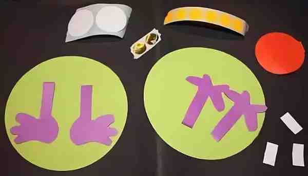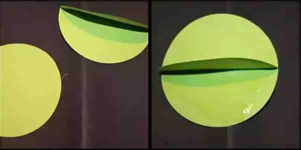 将绿色圆形卡纸对折,粘在另一个绿色圆形卡纸上~