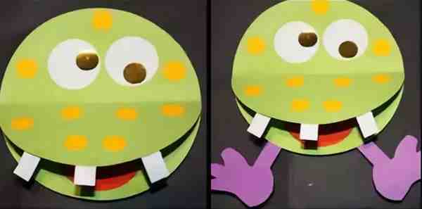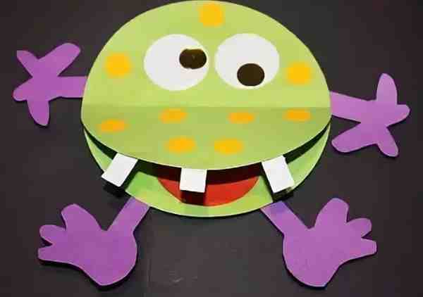 最后粘上黄色圆形卡纸做出大嘴怪身上的斑点~