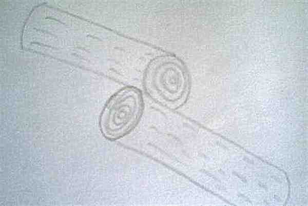 5.挨着再画出来椭圆形的另一段木头的横截面