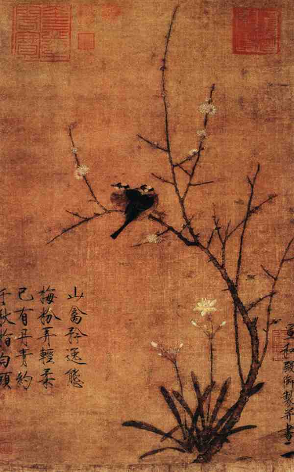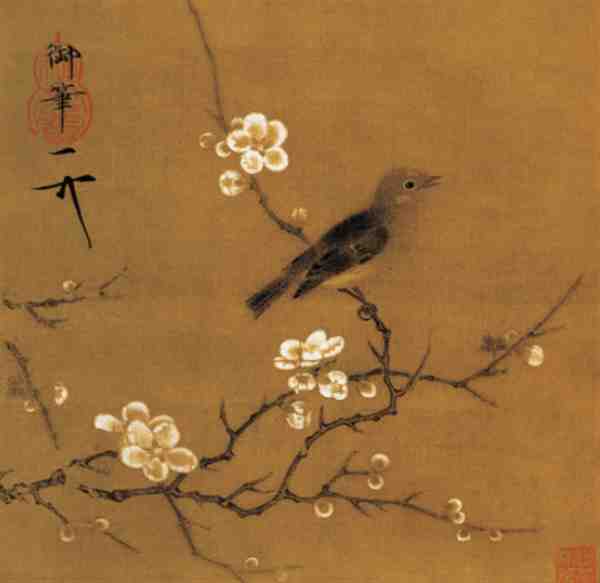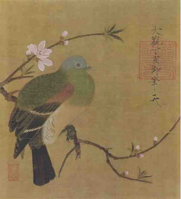 最后,赵佶在花鸟画中还强调形神并举,提倡诗、书、画、印的结合。他的画作不仅具有极高的艺术价值,也体现了他深厚的文化素养和独特的审美观念。